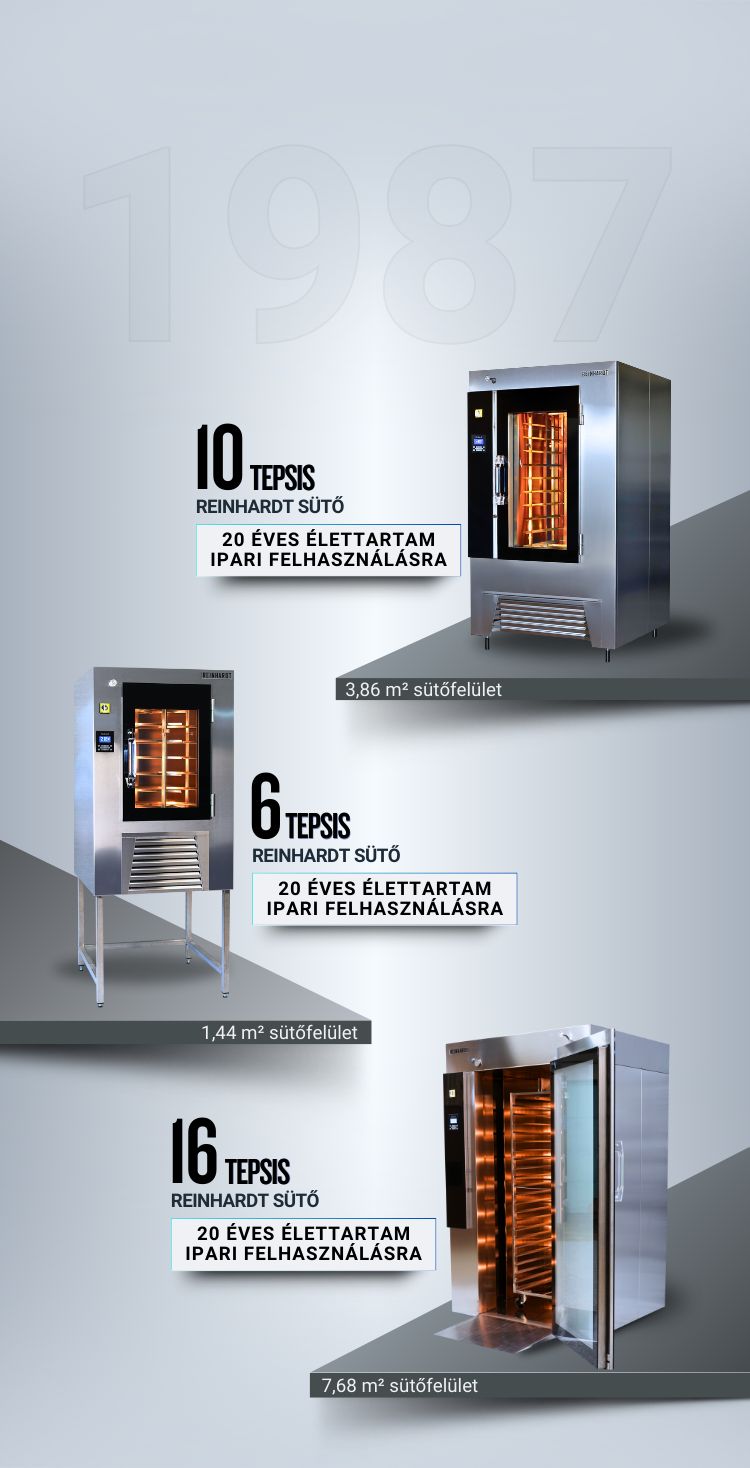 Évtizedes tapasztalataink alapján alkottuk meg az új generációs Reinhardt sütőket, amelyek a legstrapabíróbb alapanyagokból készülnek. A forgótepsis kialakítás, a precíz hőmérsékletszabályozás és az egyedülálló hőcserélő rendszer mindig is megkülönböztetett minket. Fejlesztéseinket a szakma legjobbjai segítik, hogy ne csak trendet teremtsünk, hanem fenntartható jövőt építsünk.